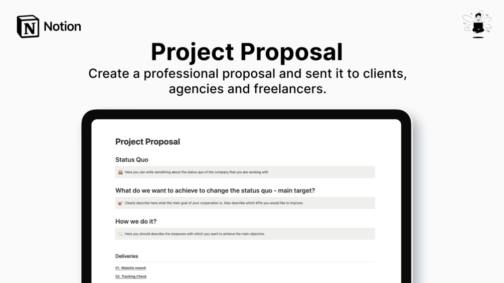 With this Notion template, you can create a professional proposal when starting a new project. It is ready to share with your team and client.